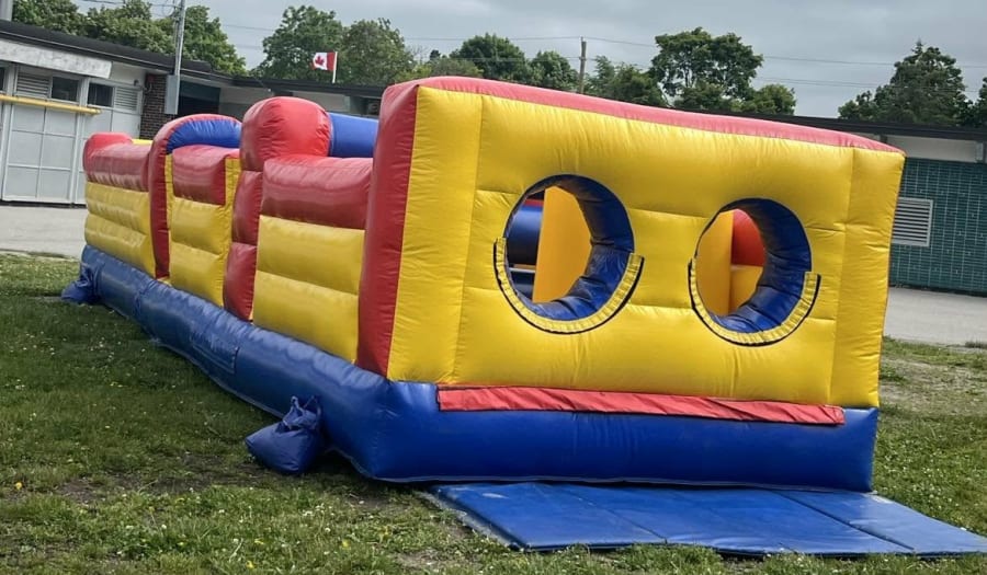 The 28' Obstacle Run is a high-energy inflatable rental that delivers fast-paced, competitive fun for birthday parties, backyard events, and group gatherings. Featuring a long course with pop-up obstacles and an open running lane, this inflatable encourages kids to race, crawl, and sprint their way to the finish line.
